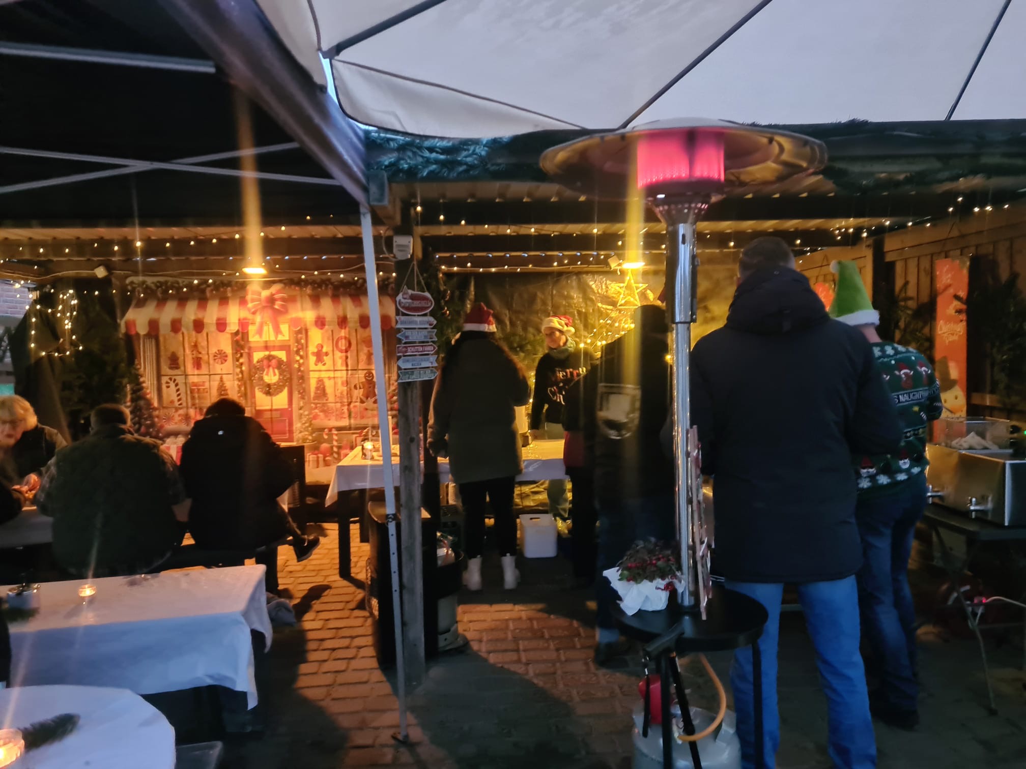 Hell erleuchtet und verführerisch duftend luden die Weihnachtsbuden zum Erkunden und Genießen ein. Angeboten wurden süßes Gebäck, Kaffee, Bier und Punsch sowie herzhafte Speisen und Geschenkideen. Der gelungene Mix machte den Abend zu einem perfekten Weihnachtsbummel – ideal zum Verweilen und Schnacken.